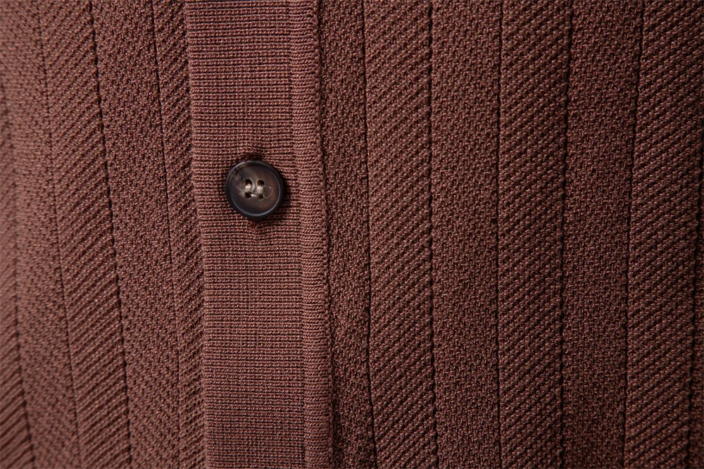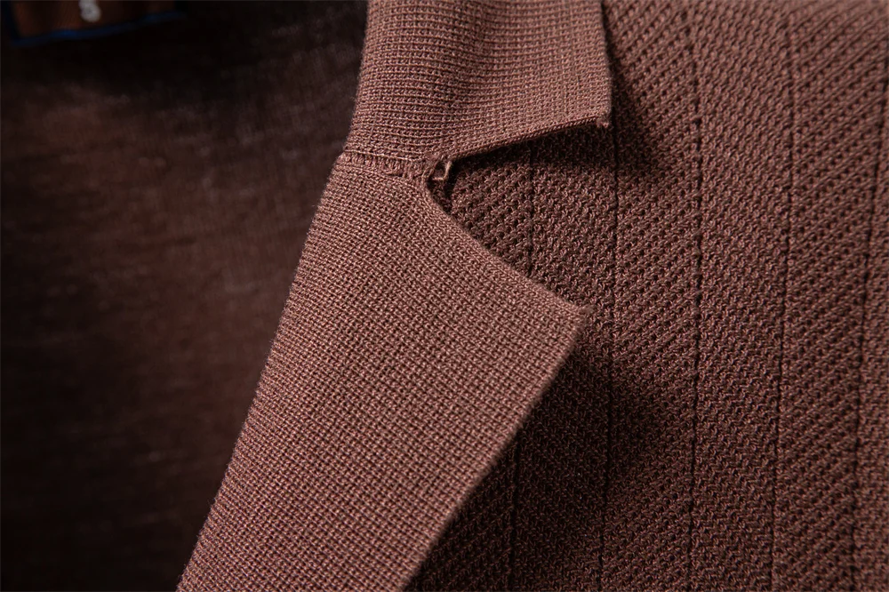 A Camisa de Tricô Texturizado Casual é uma peça moderna que combina a elegância da alfaiataria europeia com o conforto do tricô leve. Inspirada na moda italiana contemporânea, essa camisa apresenta um design sofisticado com gola estilo blazer de lapela aberta, trazendo um visual refinado e diferenciado.