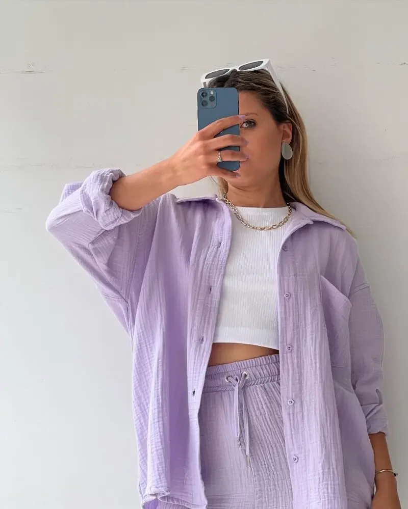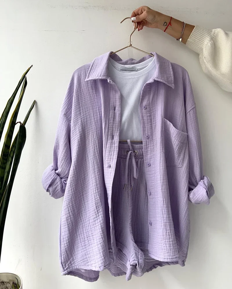 O Conjunto Comfy Casual Feminino é a expressão perfeita do estilo francês effortless, unindo conforto absoluto e sofisticação minimalista. Composto por um short de cintura alta e uma camisa oversized de gola clássica, o conjunto traz uma estética clean, moderna e atemporal — ideal para mulheres que valorizam elegância sem abrir mão do bem-estar.