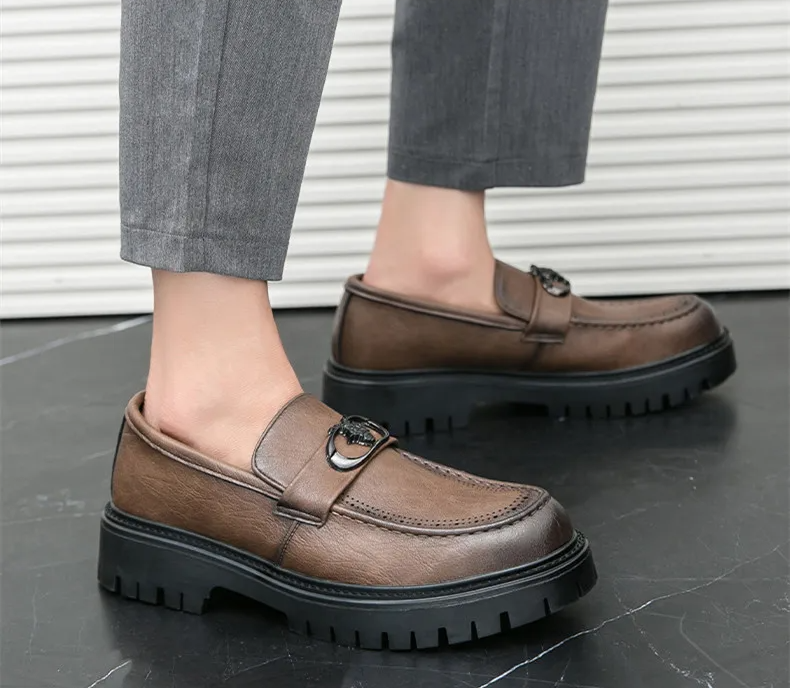 O Loafer com Fivela e Solado Tratorado é a fusão perfeita entre elegância clássica e atitude contemporânea. Inspirado na moda italiana e francesa, apresenta cabedal em couro liso premium, acabamento refinado e costura moc toe na biqueira, que acrescenta sofisticação artesanal ao design.