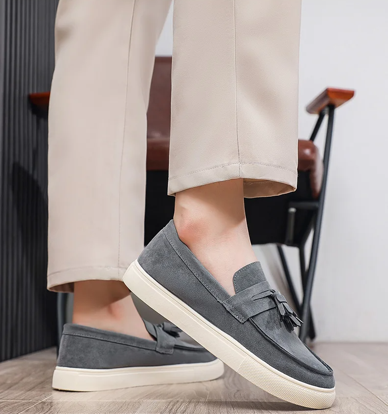 O Loafer em Camurça com Tassel é a união perfeita entre elegância clássica e conforto contemporâneo. Inspirado no estilo italiano casual, esse modelo slip-on (sem cadarço) entrega praticidade absoluta sem abrir mão do refinamento.