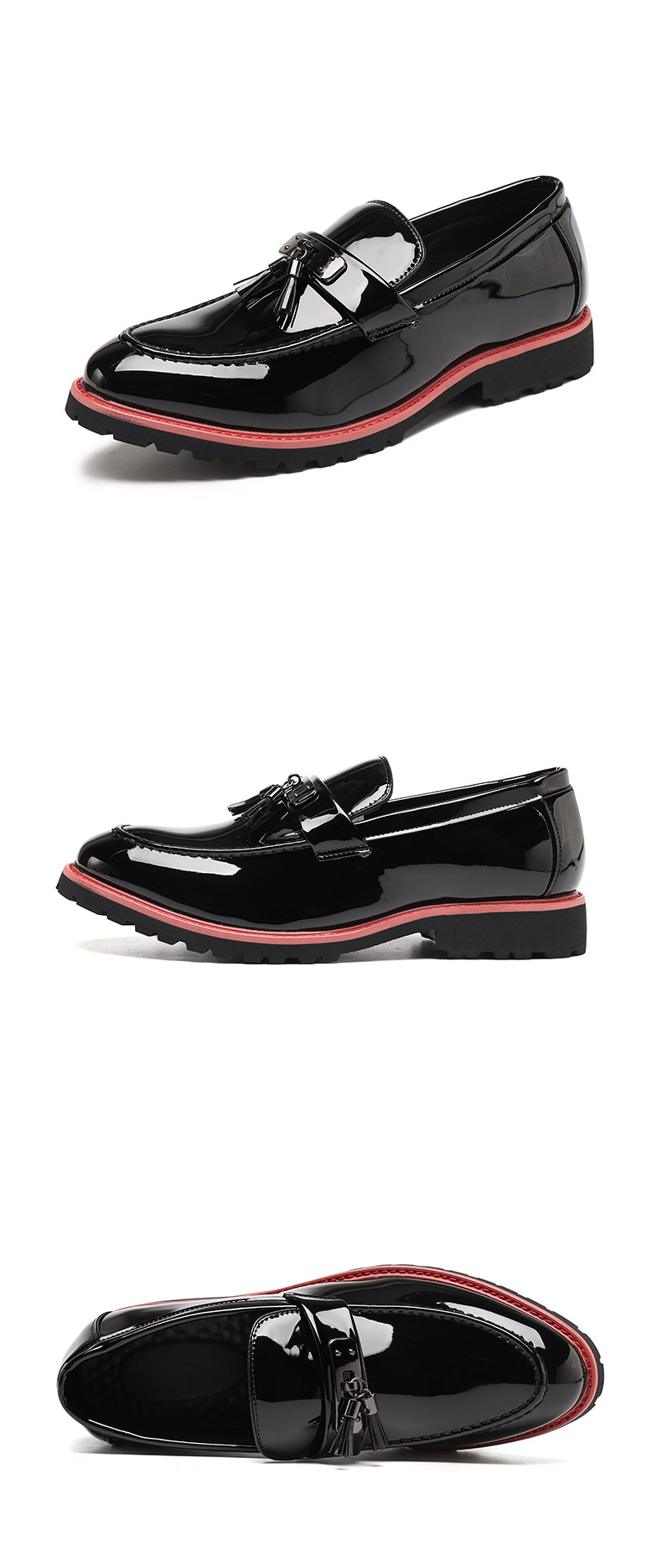 O Loafer contemporâneo com tassel traduz a sofisticação da moda italiana em um calçado marcante e extremamente versátil. Produzido em couro vernizado premium, apresenta brilho elegante, textura refinada e acabamento impecável, ideal para elevar tanto produções formais quanto looks casuais sofisticados.