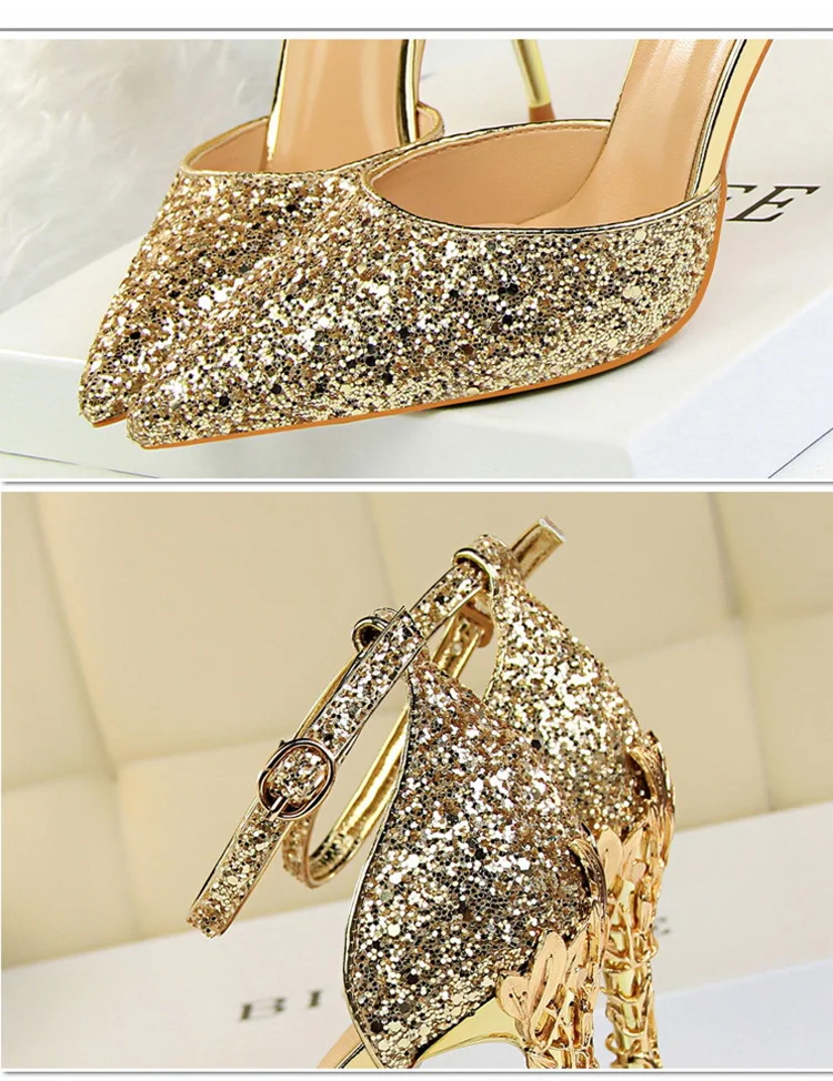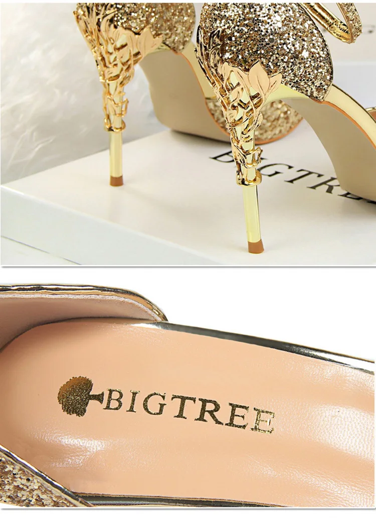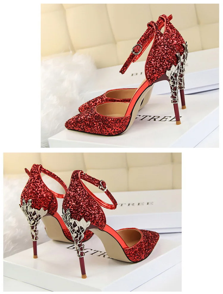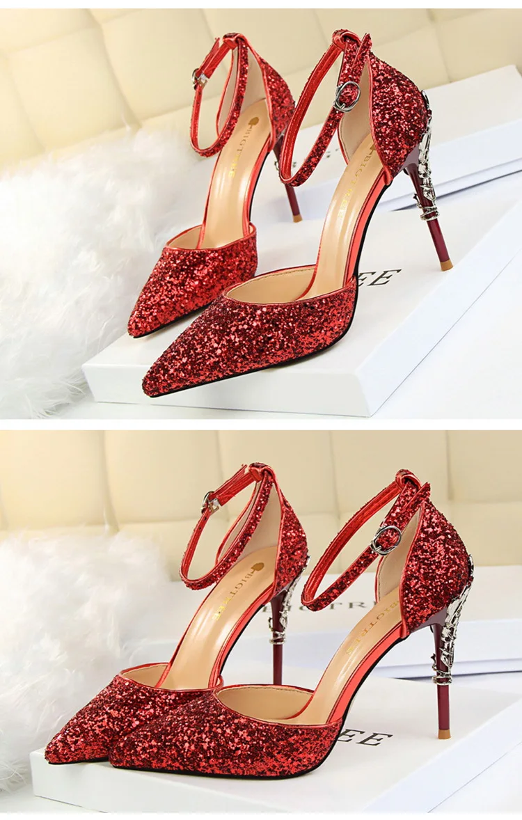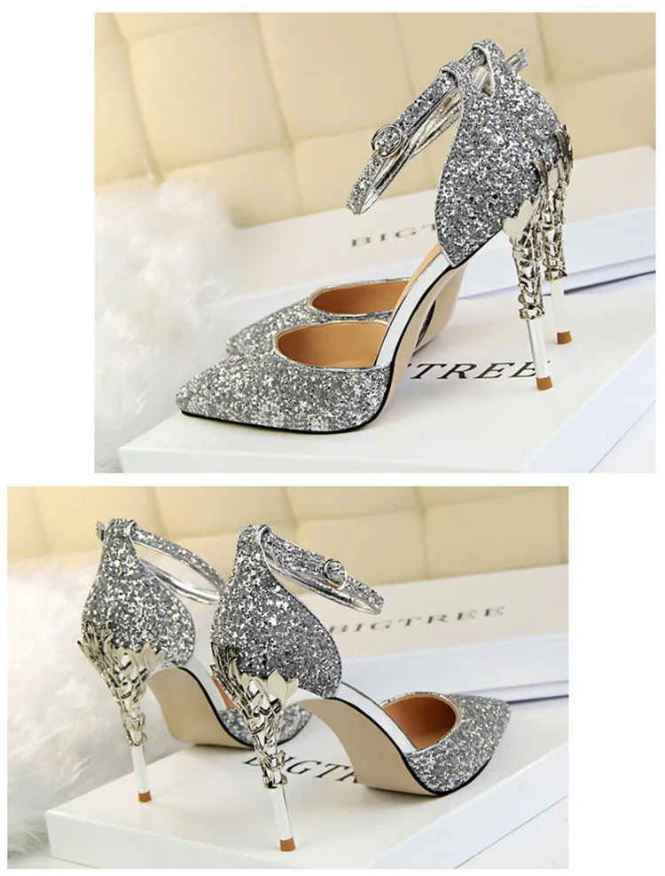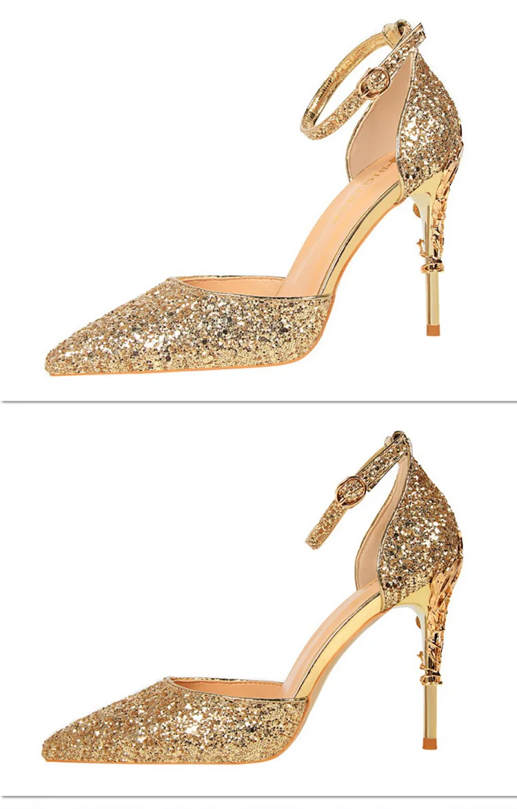 O Salto Glitter Pointed Toe Ankle Strap Stiletto Pumps Bigtree é a escolha perfeita para mulheres que querem se destacar com glamour e sofisticação. Com acabamento em glitter intenso e design marcante, esse modelo combina luxo moderno com um toque ousado da moda chinesa contemporânea.