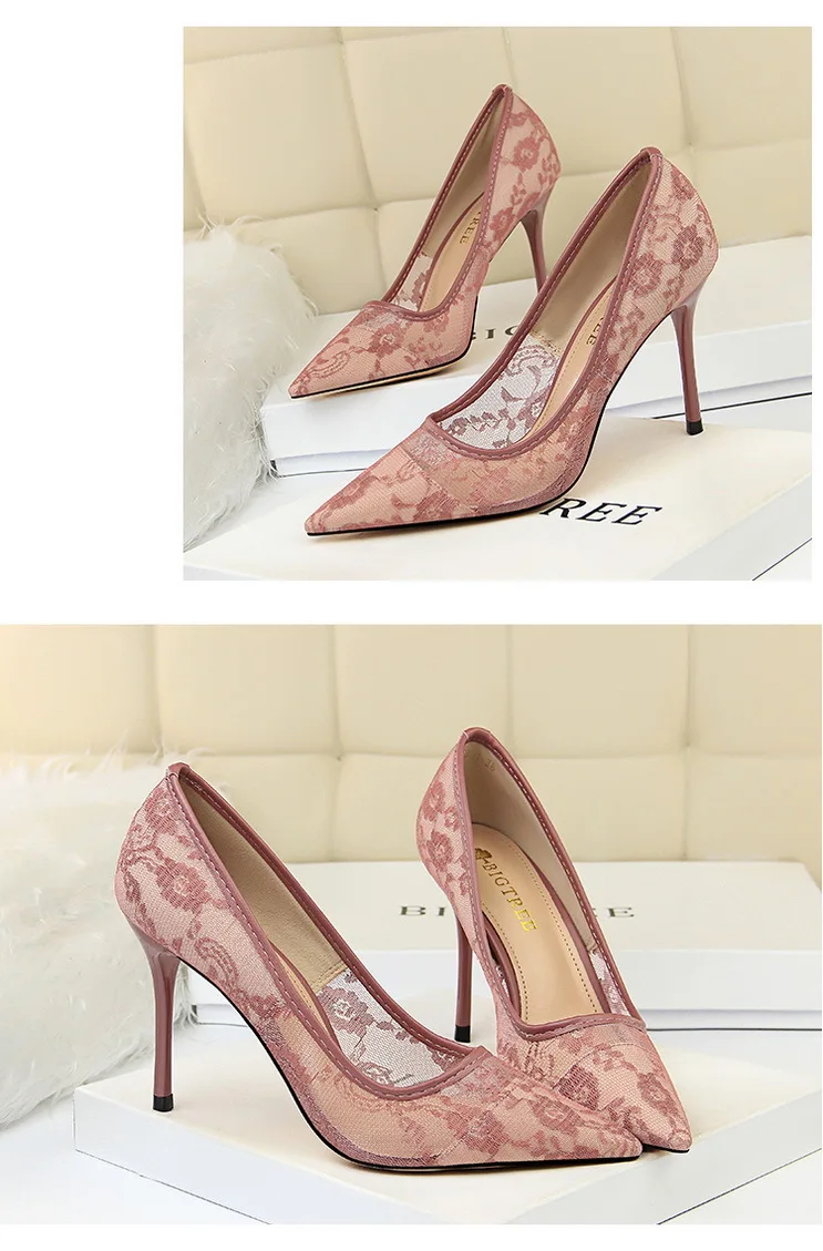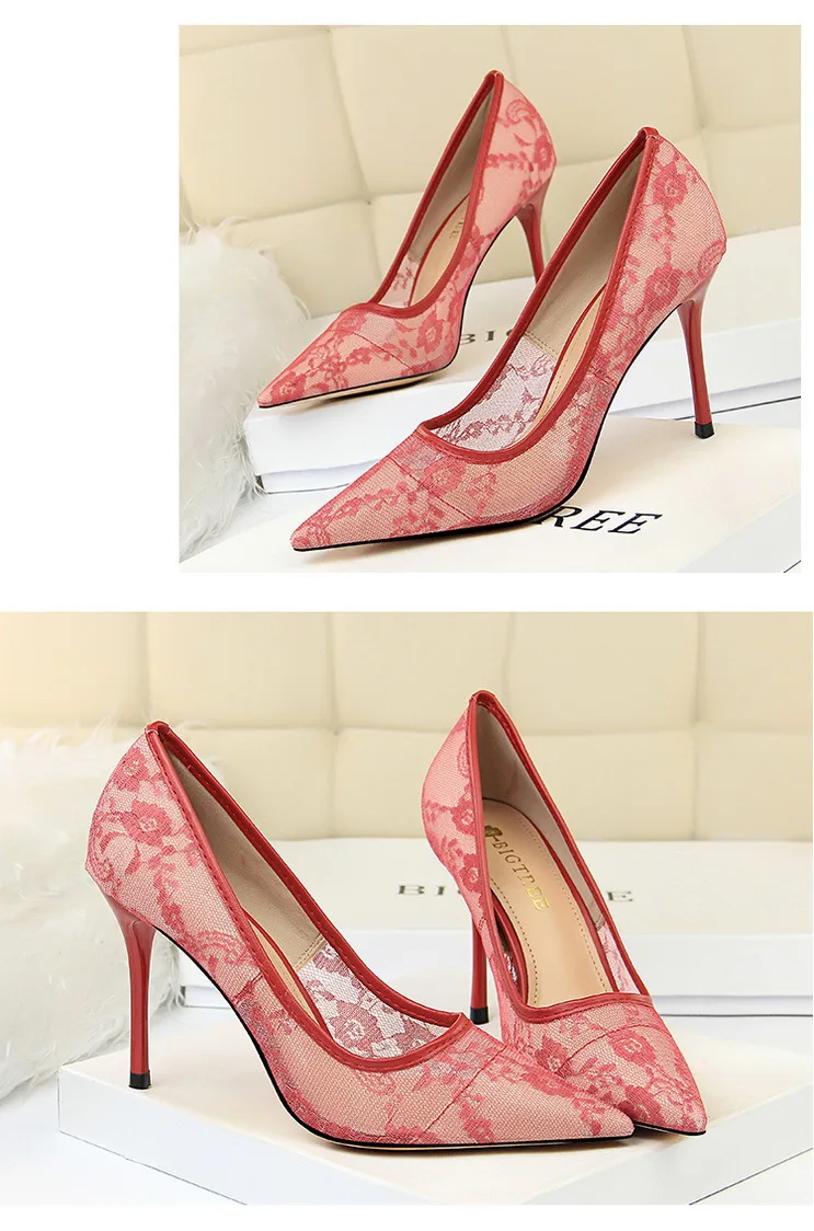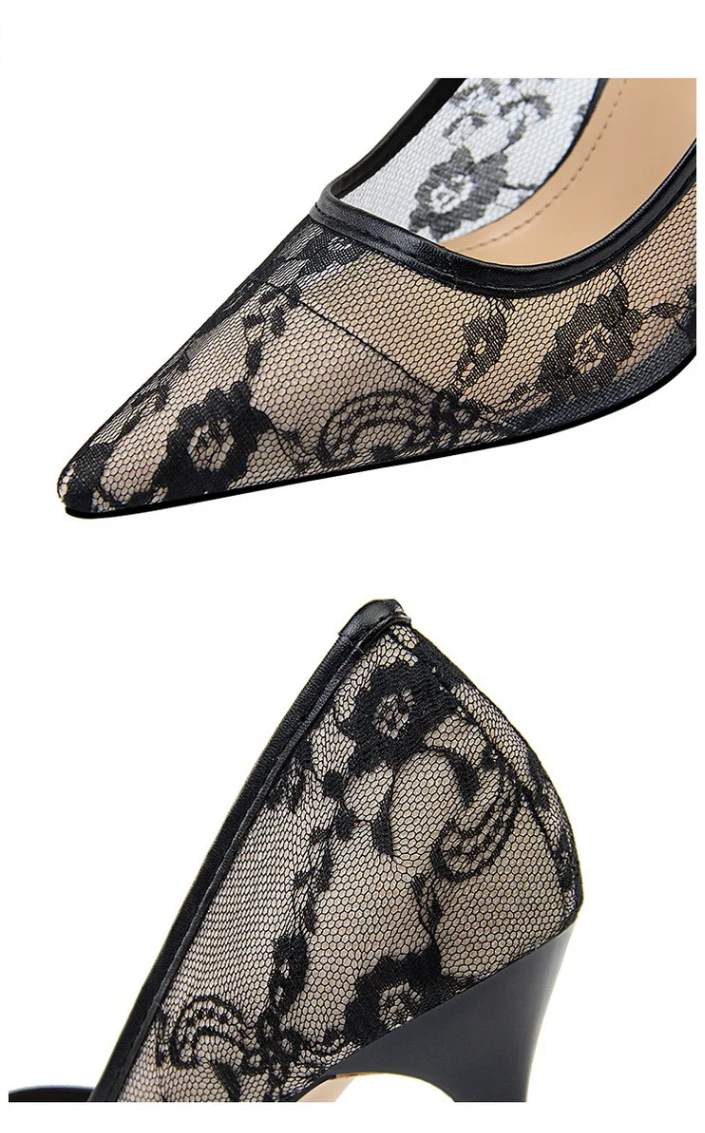 O Salto Lace Pointed Toe Stiletto Pumps Bigtree é a definição perfeita de elegância e sensualidade. Com design sofisticado e acabamento em renda floral transparente, esse scarpin traz um toque delicado e ao mesmo tempo marcante para qualquer look.