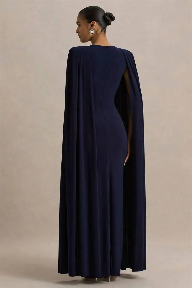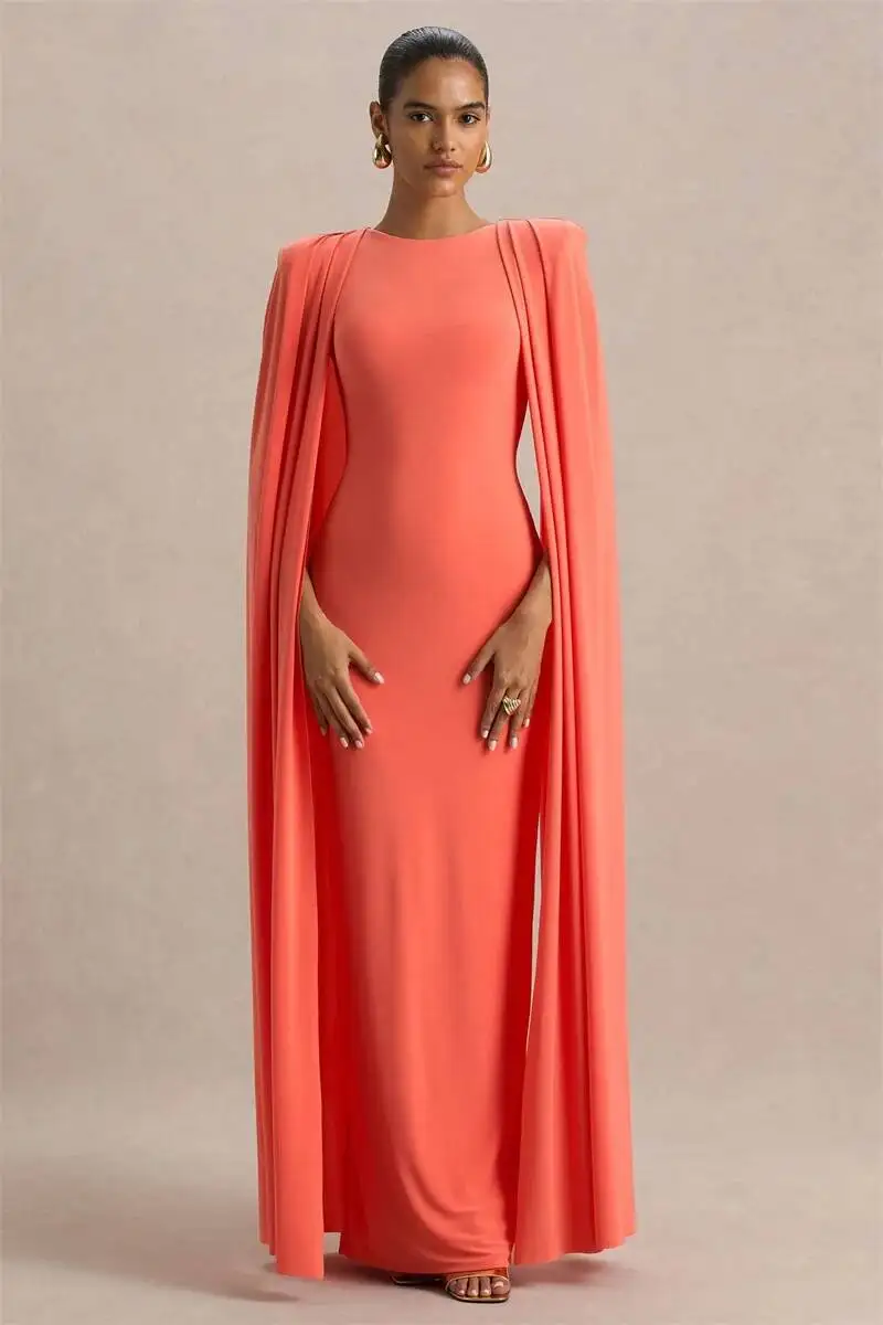 Movimento majestoso: As mangas em capa dividida criam fluidez e presença, tornando o look memorável.