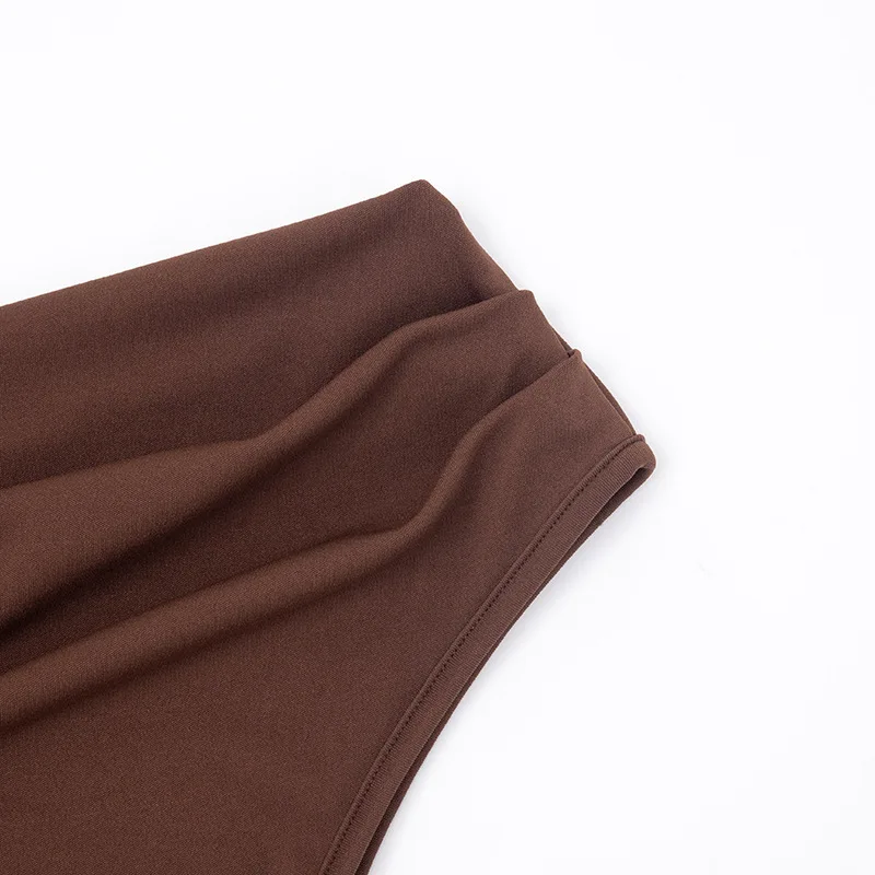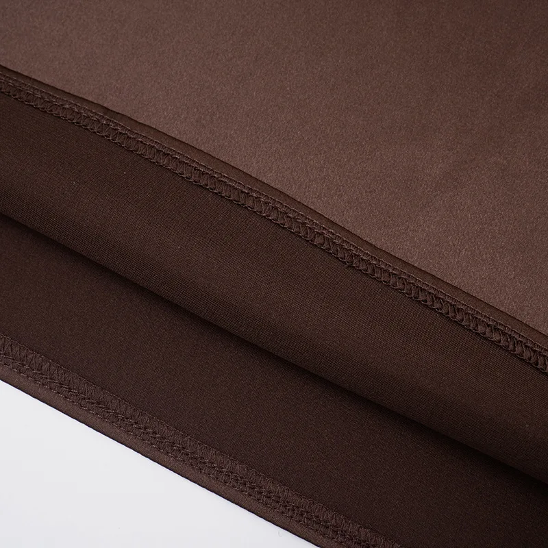 A malha acetinada possui elasticidade controlada que se adapta ao corpo com elegância.