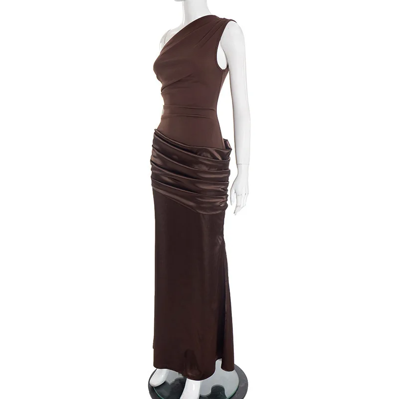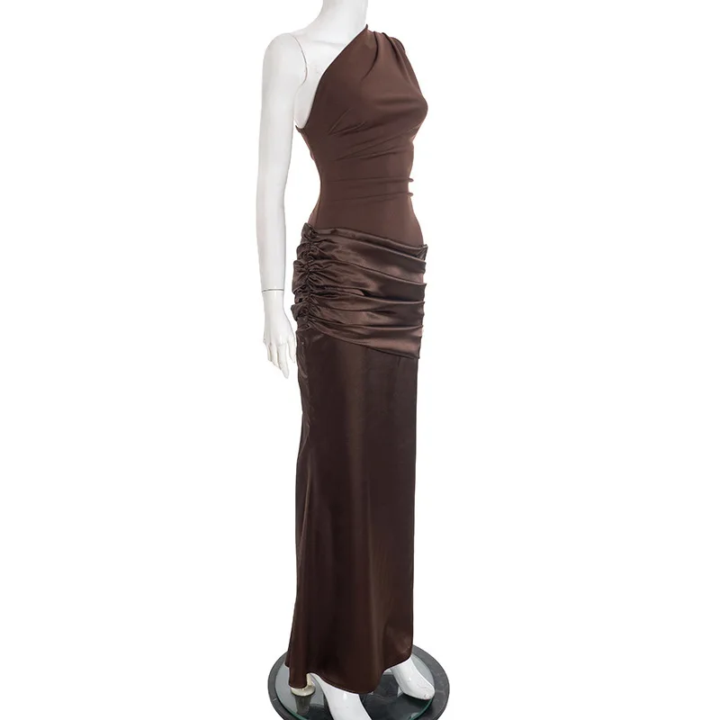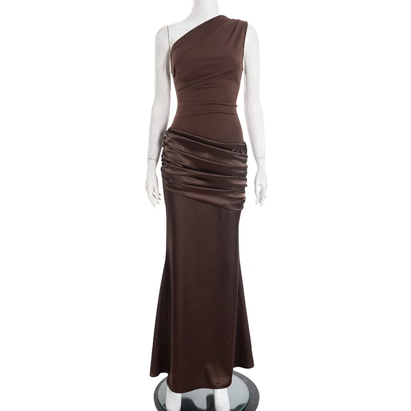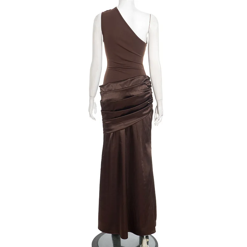 O ombro único cria um destaque visual luxuoso e exclusivo.