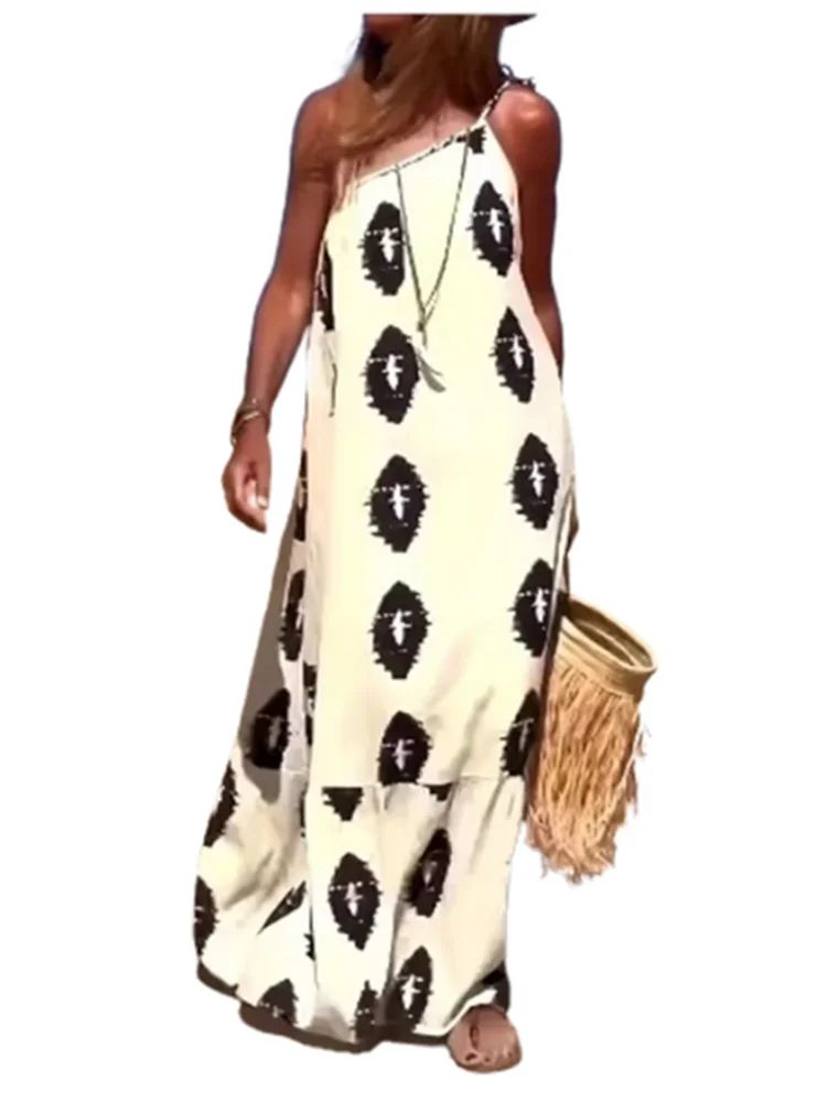 Com modelagem longa e fluida, ele apresenta um decote assimétrico moderno e uma única alça fina ajustável, criando um visual feminino, despojado e sofisticado. O corpo e a saia possuem recortes em dois níveis, que aumentam o movimento e garantem um caimento impecável.